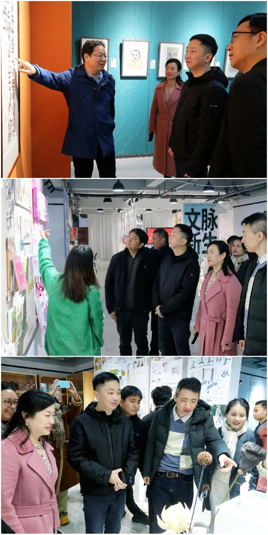考察团依次参观了学院文物保护与修复实训室、直播基地、专业实训作品展、美术馆、校史展等多个教学实践场所。在湖艺美术馆内,各级知名校友的艺术画作集中陈列,艺术气息浓郁,为走访团带来了一场难忘的视觉盛宴,也让大家对学院深厚的艺术积淀与人才成果有了更直观的感受。通过实地走访,商会一行近距离感受到湖艺在艺术传承、技能培育与数字创新方面的扎实根基,对学校“围绕舞台,造就人才,立足文旅,服务社会”的办学理念有了更深切的认同。